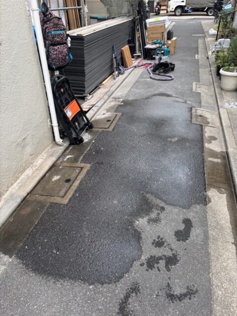 住宅街の細い路地での作業でしたが、車両の進入ルートを事前に確認し、作業員1名で対応。