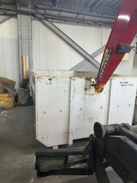 今回は、東京都足立区の倉庫内にて4tコンテナ車を使用した産業廃棄物コンテナの入替作業を行いました。