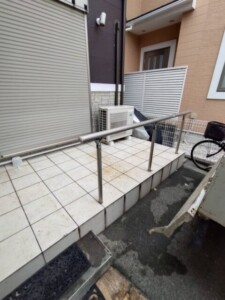 床面をしっかりとブルーシートで養生し、建物やフェンスを傷つけないよう作業を進めました。