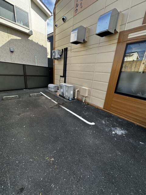 店舗裏や駐車場スペースは、限られた動線ではありましたが、近隣の方や通行の妨げにならないよう注意しながら、手積みにて作業を進めました。