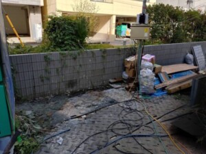 現場には、木材端材・石膏ボード破片・ダンボール・梱包材・プラゴミ・雑多な建築廃材がまとまっており、かなりのボリューム。