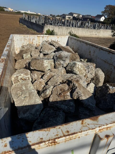 今回は、栃木県小山市にて、自然石やコンクリートがら(コンガラ)など、かなり重量のある廃材の回収を行いました。